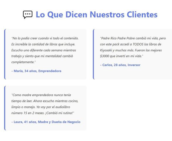 "Padre Rico Padre Pobre cambió mi vida, pero con este pack accedí a TODOS los libros de Kiyosaki y muchos más. Fueron los mejores $3000 que invertí en mi vida."