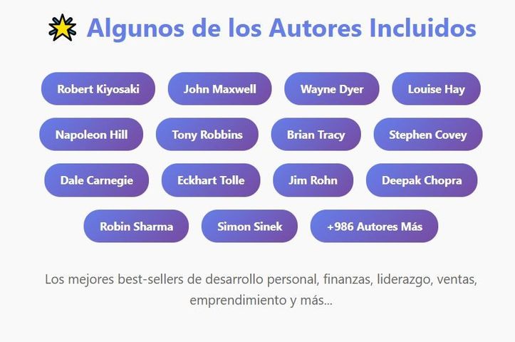 Mientras tanto, el tiempo sigue pasando. Cada día que no aprendés de los mejores es un día más lejos de tu versión más exitosa. Robert Kiyosaki, John Maxwell, Wayne Dyer... todos tienen las respuestas que necesitás, pero comprar cada libro individualmente te costaría más de $500,000 pesos.